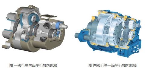 該種結(jié)構(gòu)主要用于2MW以及2MW以下功率的風電齒輪箱,用一組平行級代替行,可靠性高,但體積與重量大。