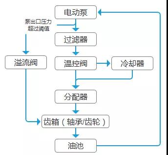 潤滑系統(tǒng)主要是為齒輪箱提供源源不斷的潤滑油,冷卻系統(tǒng)用于降低潤滑油的溫度。