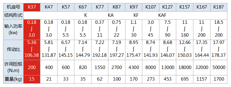 K系列減速機,結合國際技術要求制造,具有很高的科技含量,節(jié)省空間,可靠耐用, 承受過載能力高,功率可達200Kw,能耗低,性能優(yōu)越,減速機效率高達95%以上,振動小,噪音低,節(jié)能高,選用優(yōu)質鍛鋼材料,鋼性躊鐵箱體,齒輪表面 經(jīng)過滲碳淬火,經(jīng)過精密加工,構成了斜齒輪、傘齒輪,錐齒輪傳動總成的減速機。